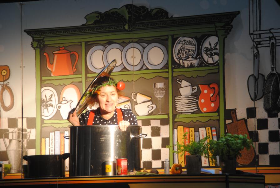 Diese amüsante Abwandlung eines bekannten Sprichwortes beschreibt ein absolut irres Kochduell, welches die SchülerInnen unserer 5. und 6. Klassen diese Woche miterleben durften. Das Theater Nimmerland aus Konstanz zeigte eine turbulente Kombination aus Theaterstück und Musical zum Thema Ernährung.