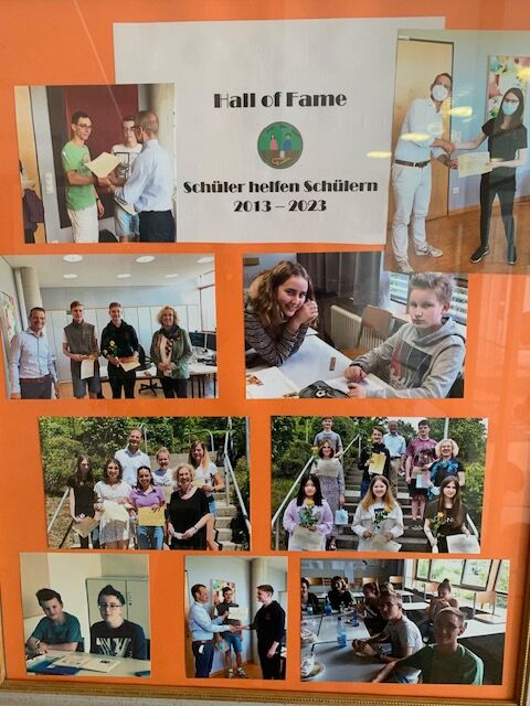 Im 13. Jahr in Folge steht ein Team aus hilfsbereiten „Großen“ ab der 8. Jahrgangsstufe bis hin zu Schülerinnen und Schülern der 12. Jgst. den Schülerinnen und Schülern der Unterstufe jeweils montags und dienstags in der Mittagspause in Raum 34 oder an frei vereinbarten Terminen für deren Fragen egal zu welchem Fach kostenfrei zur Verfügung. Es handelt sich um regelmäßige Hilfe das ganze Schuljahr hindurch, oder auch mal nur punktuelle Hilfe nur vor einem Leistungsnachweis. Meist handelt es sich um „echte Tandems“, die aus einem Hilfesuchendem und einem Helfendem bestehen, aber manchmal sind es auch zwei Schüler mit gleicher Problematik bzw. Lernstoff, denen dann ein Großer zur Seite steht. Die helfenden Schülerinnen und Schüler erhalten am Ende des Schuljahres ein Zertifikat, das ihr großartiges ehrenamtliches Engagement würdigt.