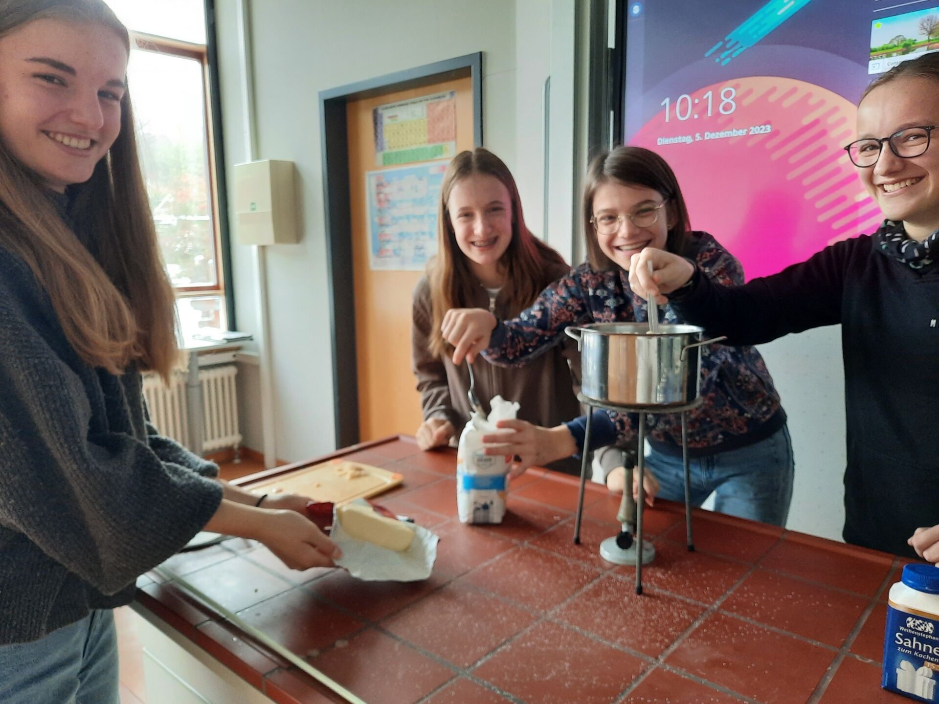 Außerdem gibt es ungefähr 3-4 Mal im Schuljahr Mottonachmittage, bei denen wir das Schullabor und manchmal auch die Schulküche unsicher machen.